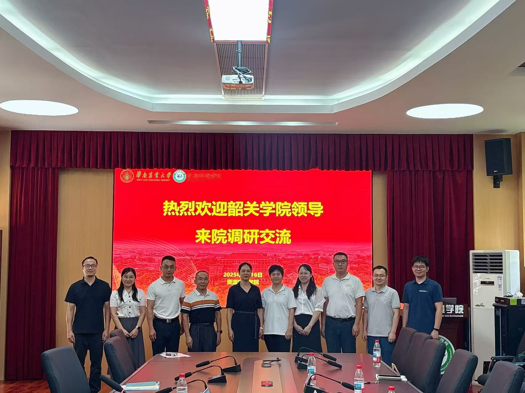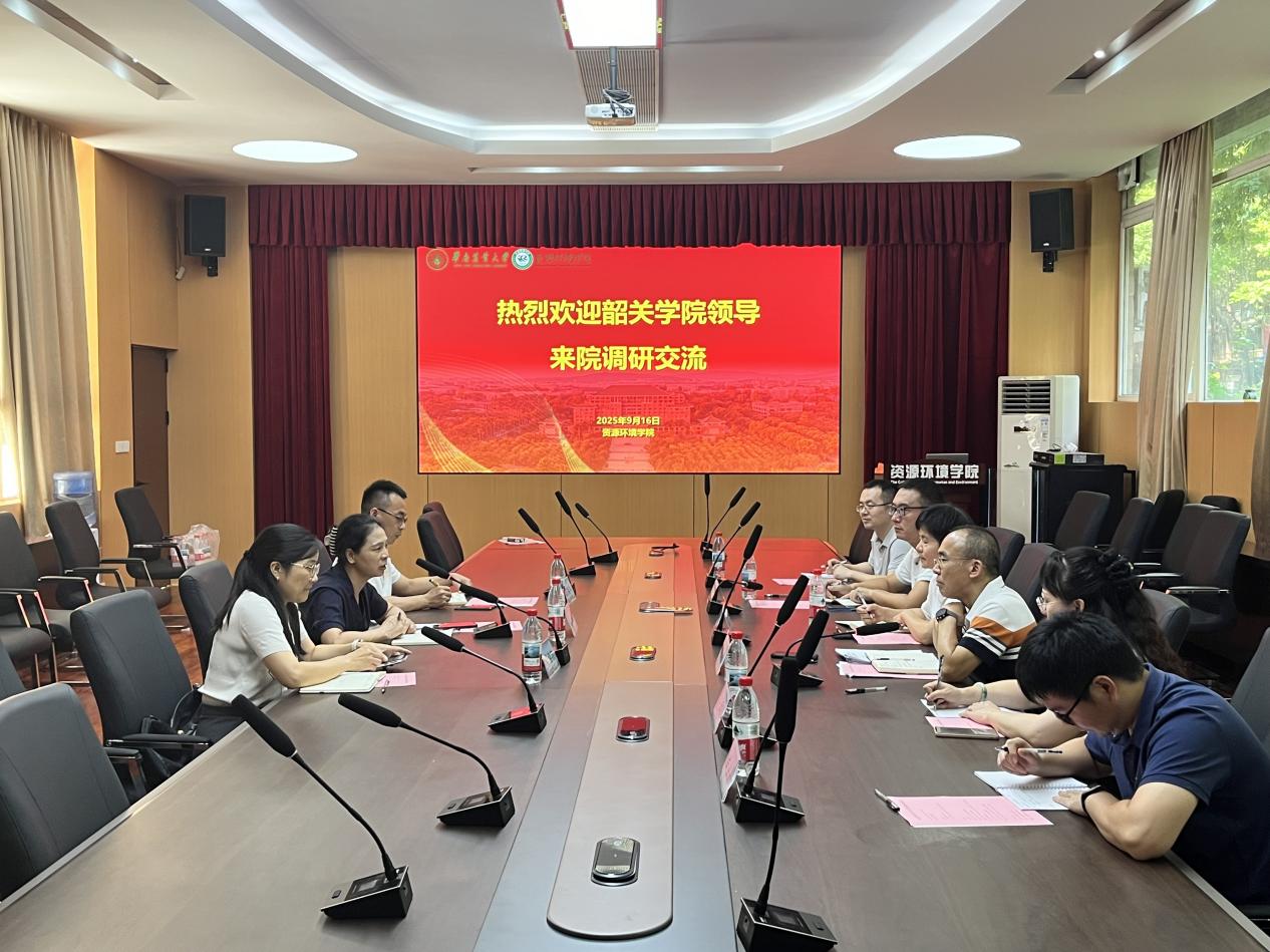 为推进两校“帮扶机制”建设,强化党建引领学科发展效能,同时精准助力兄弟院校完善资源与环境专业硕士学位点申报工作,2025年9月16日,韶关学院化学与土木工程学院党委书记张洁珍、院长张圣领一行赴我院,围绕党建工作、学位点建设两大方面开展专题座谈。学院党委书记易晖、学院常务副院长田江、党委副书记方秋中、副院长舒迎花、副院长余光伟、华南农业大学对口帮扶韶关学院工作队队员王瑞龙研究员热情接待并参与交流。
