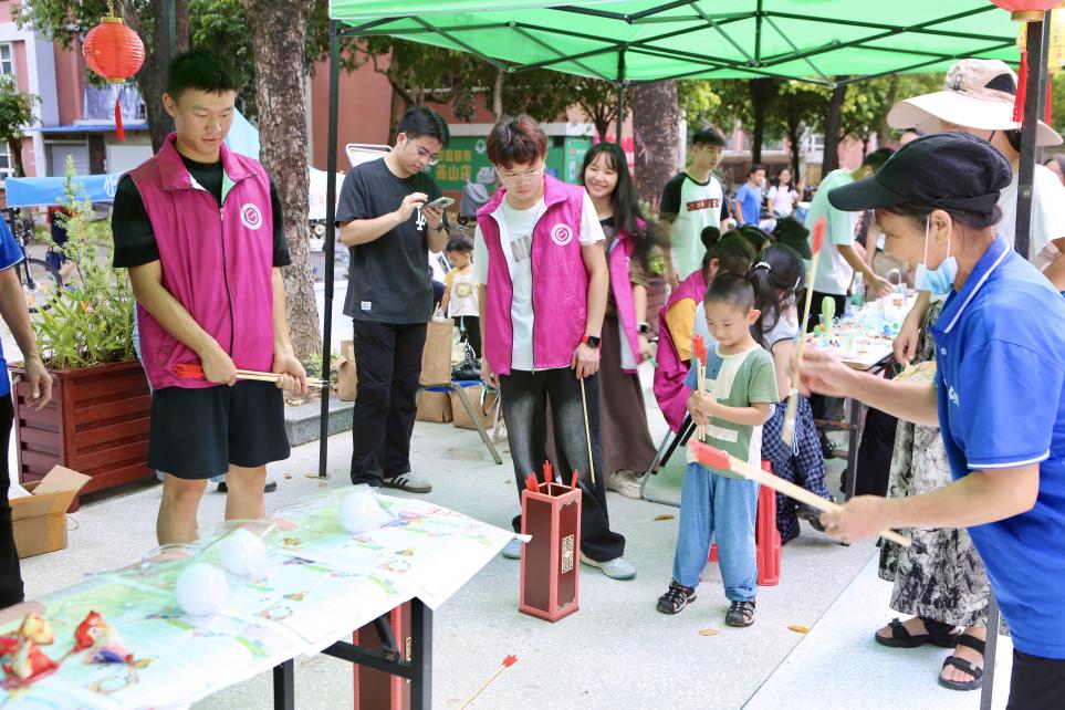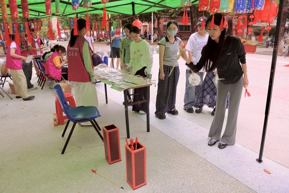 投壶区的欢声笑语总能迅速吸引过往行人的目光,一场跨越千年的古礼正以轻松活泼的方式在校园中“复活”。有的应声入壶,清脆一响,引来四周一片叫好;有的与壶耳轻轻擦过,留下片刻惋惜,随即化作更热烈的鼓励。这项古老礼仪,在青春的活力中被重新诠释。