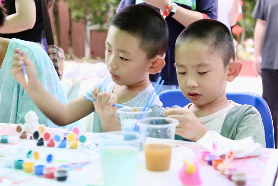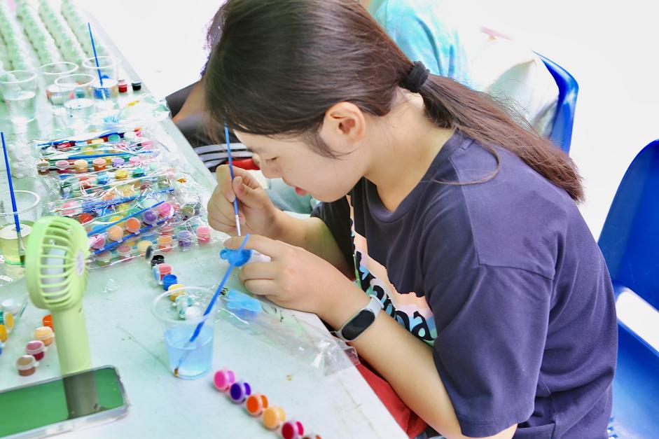 泥塑涂色区域仿佛是一方能让时间慢下来的净土。无论是大人还是孩子,皆围坐桌旁,神情专注,小心勾勒,描绘天马行空;有的将其绘得妙趣横生,有的则为其染上梦幻的渐变。泥塑涂色让同学们在静谧的创造中,感受泥塑的温度与华夏美学的深邃。
