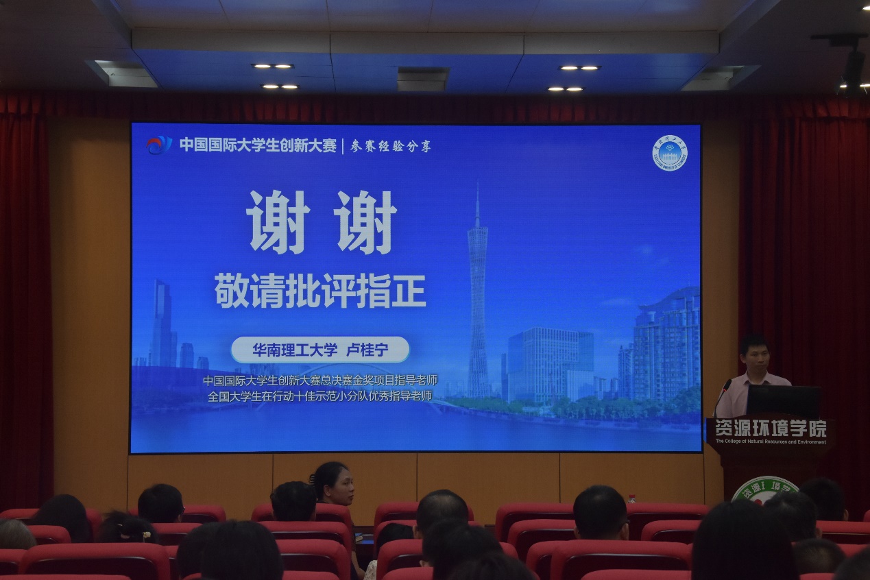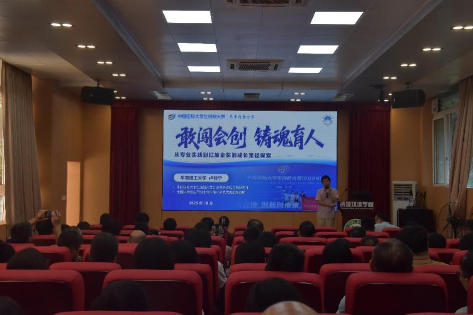为提升全院教职工对中国国际大学生创新大赛及 “青年红色筑梦之旅” 赛道的认知,强化教职工指导学生开展创新创业项目的能力,促进学生在赛事中实现专业实践与创新创业素质的提升,我院于2025年10月9日下午,在院楼105报告厅开展“从专业实践到红旅金奖”专题学习讲座。全院教职工参与,讲座由余光伟副院长主持,由华南理工大学环境与能源学院研究员、博士生导师卢桂宁主讲。