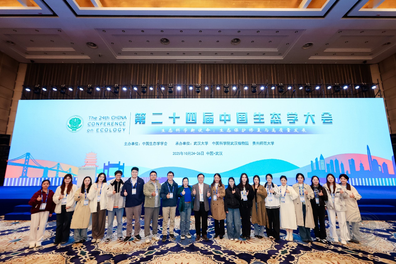 2025年10月24日至26日,由中国生态学学会主办,武汉大学、中国科学院武汉植物园、贵州师范大学共同承办的第二十四届中国生态学大会在武汉东湖宾馆隆重举行。本届大会以“生态科学新使命:生态保护修复与高质量发展”为主题,吸引了来自全国32个省、市、自治区,580余家单位的2200余名生态学科技工作者参会。大会共组织了50个专题分会场以及第五届中国生态学学会青年托举人才论坛和中国生态学学会第五届期刊论坛,共安排了695个分会场报告和490余位研究生报告,以及115个学术墙报,为全国生态学领域科研工作者提供了高水平交流平台。我校资源环境学院生态学系章家恩教授带领师生团队20多人参加了本次大会。