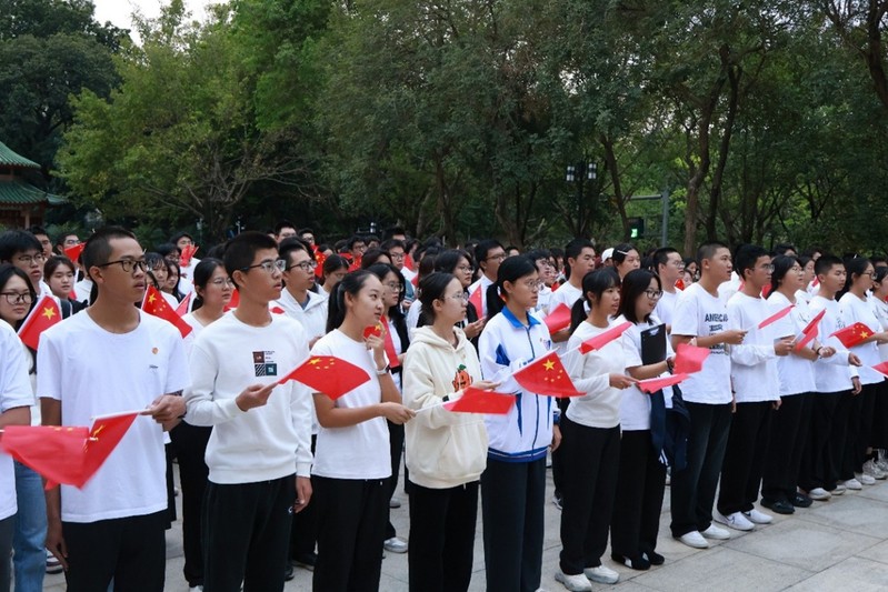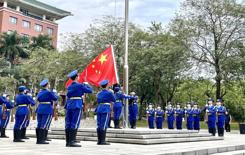 11月3日,资源环境学院与生命科学学院师生齐聚行政楼广场,举行以“弘扬伟大抗战精神,汲取青春奋进力量”为主题的升旗仪式。学院党委副书记、辅导员代表、学生党员及教官团成员等200余名师生共同参与。