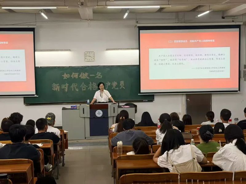 六节党课聚焦不同重点,形成层次清晰、逻辑连贯的系统性学习体系。第一节课,王玉云教授以 “学习百年党史,践行初心和使命” 为主题,带领学员回溯党的百年奋斗征程,于其中挖掘初心使命的精神内核,解读其在新时代的实践意义,帮助学员深刻理解党的初心与使命的精髓要义;第二节课,朱钧陶教授围绕 “继往开来,迈向复兴,谱写新时代中国特色社会主义华章”,结合国家发展战略,阐述新时代推进民族复兴的路径方向,为学院入党积极分子和发展对象立足服务国家的需求提供思路指引;第三节课,顾美霞教授聚焦 “如何做新时代合格党员”,从思想建设、行动落实、作风锤炼等维度,明确合格党员的具体标准与实践要求,为学员指明努力方向;第四节课,徐大兵教授以 “深入学习‘五史’,坚定理想信念” 为核心,系统梳理党史、新中国史、改革开放史、社会主义发展史、中华民族发展史的内在联系,引导学员从历史脉络中汲取信仰力量,筑牢向党组织靠拢的思想根基;第五节课,易晖书记围绕 “学好党章必修课,做新时代合格党员”,解读党章核心要义,引导学员以党章为尺,规范言行举止,提前适应党员标准;第六节课,傅梅芳教授围绕 “九三阅兵:读懂中国力量和中国担当”,结合阅兵经典场景,展现国家实力与大国担当,激发学院入党积极分子和发展对象投身祖国建设的民族自豪感与责任感。