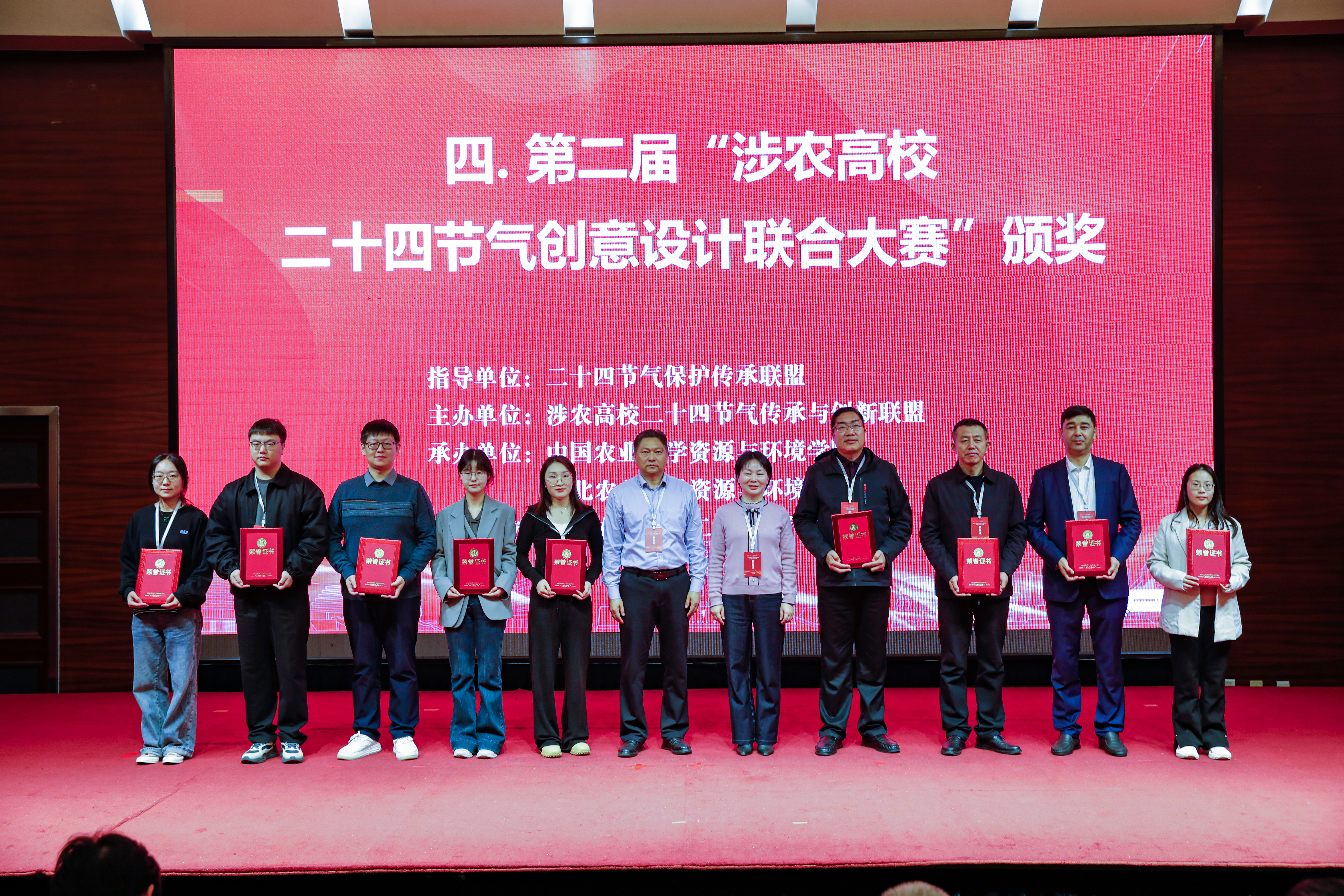 会上举行了2025年“科技小院行”大学生暑期联合社会实践表彰与第二届“涉农高校二十四节气创意设计”联合大赛颁奖仪式。我院荣获“涉农高校二十四节气创意设计联合大赛”一等奖;“科技小院行”大学生暑期联合社会实践优秀实践小队、优秀科技小院实践基地、优秀指导老师等多项荣誉称号。
