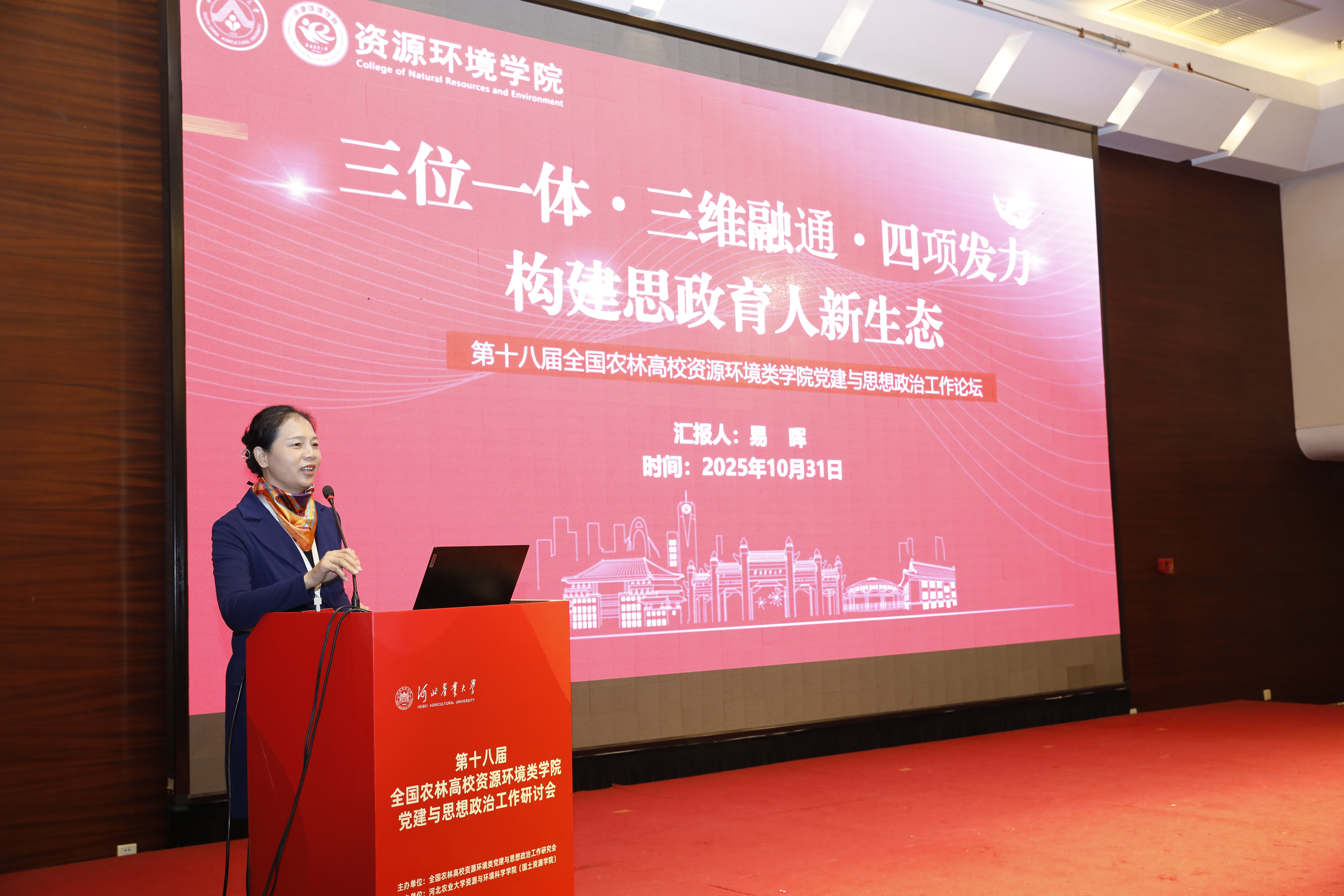 10月31日,第十八届全国农林高校资源环境类学院党建与思想政治工作研讨会在河北农业大学举办。来自全国23所农林高校资源环境类学院70余名代表齐聚河北保定,围绕“守正创新,以高质量党建推进新时代立德树人工程”展开深入研讨。我院党委书记易晖带队参加会议。