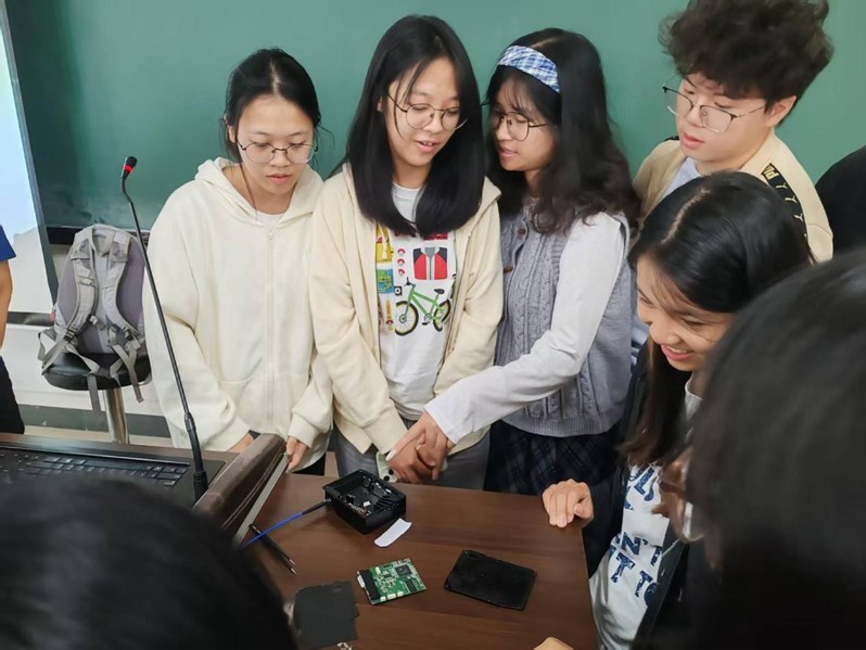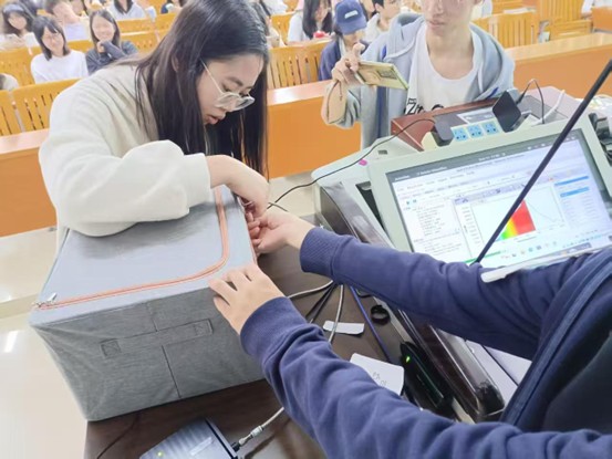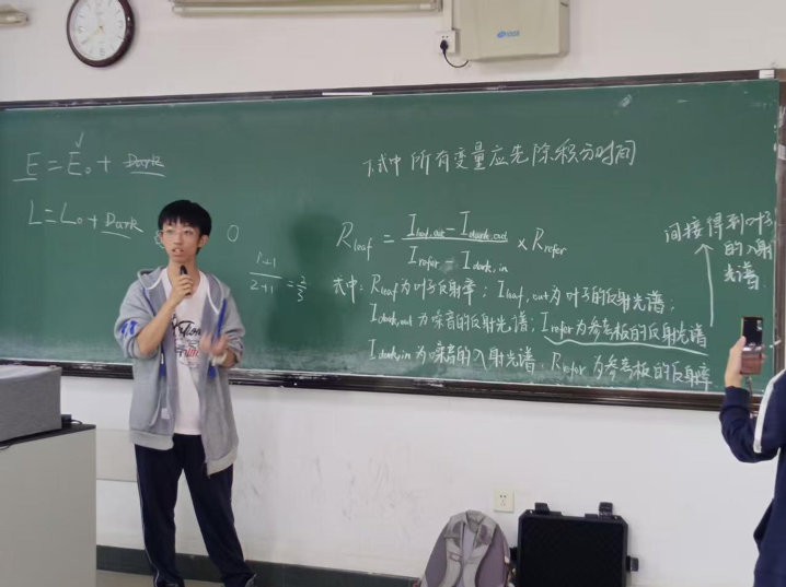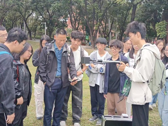 2023级地理信息科学专业陈梓薇同学在屈教授指导下,为大家演示了叶片反射光谱的测量流程;2024级地理信息科学专业李佩禧同学则完成了仪器数据的电脑端下载操作;2024级地理信息科学专业廖书家同学进一步讲解了叶片反射光谱测量的核心原理。