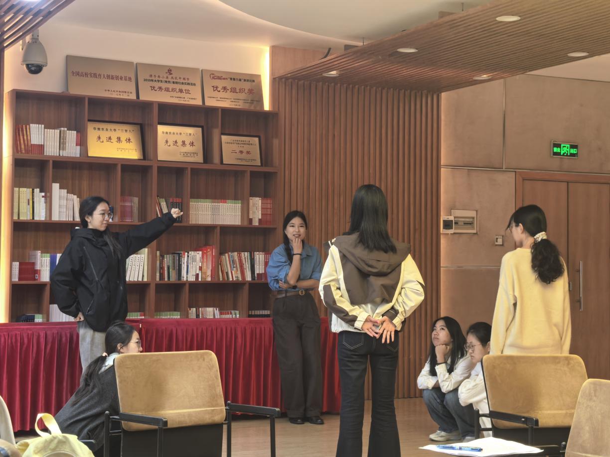 在核心环节“家庭雕塑”中,同学们以身体为媒介,通过角色扮演、空间距离与肢体语言的塑造,将原本抽象的家庭互动模式具象化为立体场景。一位同学作为“雕塑家”,安排其他成员扮演不同家庭成员,再现典型家庭关系图景。随后,通过“重塑雕塑”的过程,参与者尝试调整姿态、位置与表情,探索更健康的相处模式,并表达那些未曾说出口的情感与立场。这一过程不仅加深了参与者对家庭动力系统的理解,也为其提供了表达与修复的情感出口。