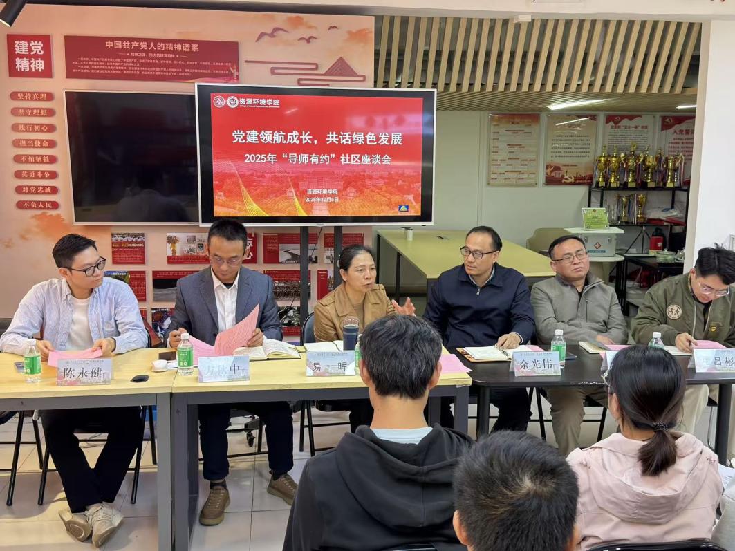 为促进师生交流互动,深入了解学生需求,推进党建工作与育人实践深度融合,2025年12月5日下午,我院在思创园开展以“党建领航成长,共话绿色发展”为主题的导师有约座谈会。学院党委书记易晖、党委副书记方秋中、副院长余光伟以及学业辅导员陈永健、刘建滨出席本次座谈会,与来自各年级的学生代表进行交流分享。会议由学院团委书记唐吕彬主持。
