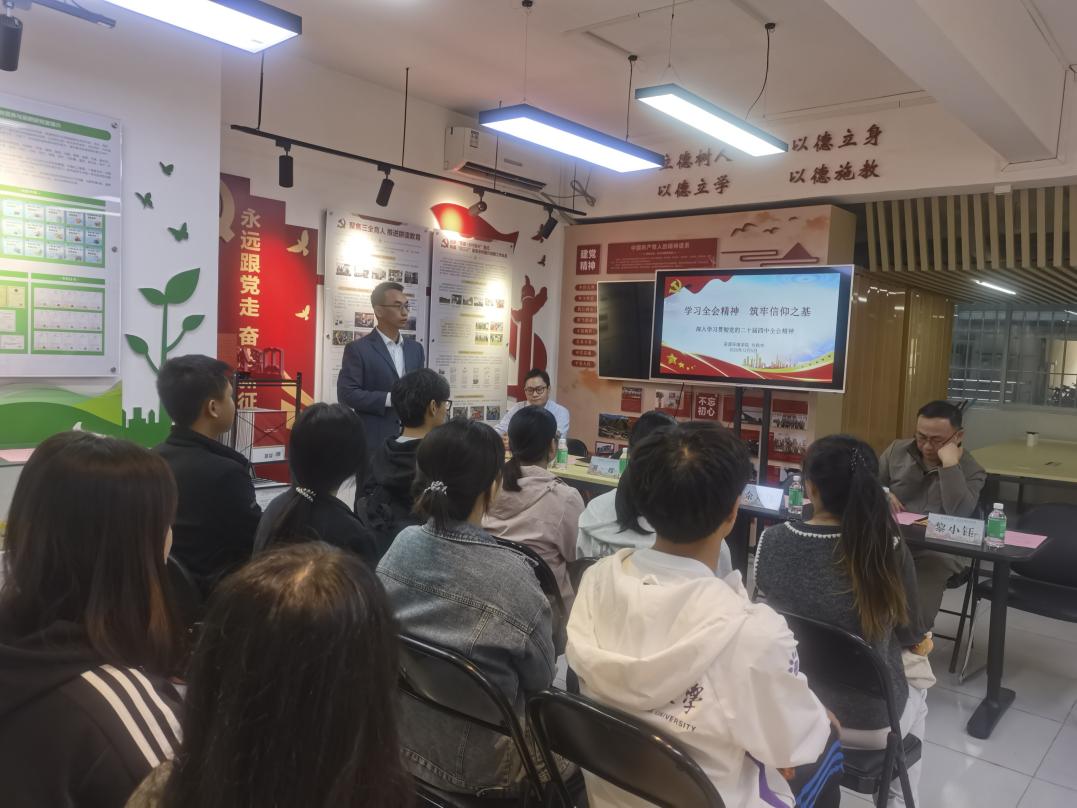 座谈会上,学院党委副书记方秋中首先围绕学习贯彻党的二十届四中全会精神讲授专题思政课。解读全会核心要义,勉励同学们以全会精神为指引,坚定理想信念,明确成长方向,夯实专业基础,将理论学习与专业成长、个人发展相结合,以实际行动践行绿色发展理念。