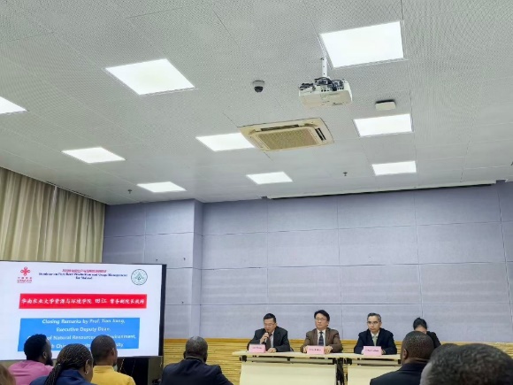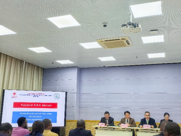 结业仪式上,华南农业大学副校长陈乐天,资源环境学院党委书记易晖、常务副院长田江,国际教育学院院长冯立新、副院长吴瑛出席并致辞。与会领导祝贺学员顺利结业,向参与项目实施的授课教师、管理人员及志愿者表示感谢,指出本次研修班既是中马农业技术与管理经验交流的载体,也是增进两国友谊、深化双边合作的平台,期望学员将所学应用于马拉维农业实践,推动两国农业领域交流合作持续深化,共同助力全球粮食安全与农业绿色转型。