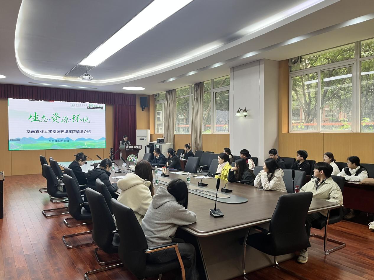 2025年12月26日下午,华南农业大学资源环境学院在资环楼104会议室以线上线下相结合的形式,成功举办第五届“紫荆国际青年学者”论坛——资源环境学院分论坛。本届论坛邀请了来自国内外顶尖高校及研究机构的四位优秀青年学者进行学术前沿报告,围绕环境地球化学、碳中和生物技术、区域生态可持续发展及高精度时空信息技术等交叉领域展开深度交流,吸引了学院师生广泛参与。学院党委书记易晖、常务副院长田江、副院长舒迎花出席论坛。