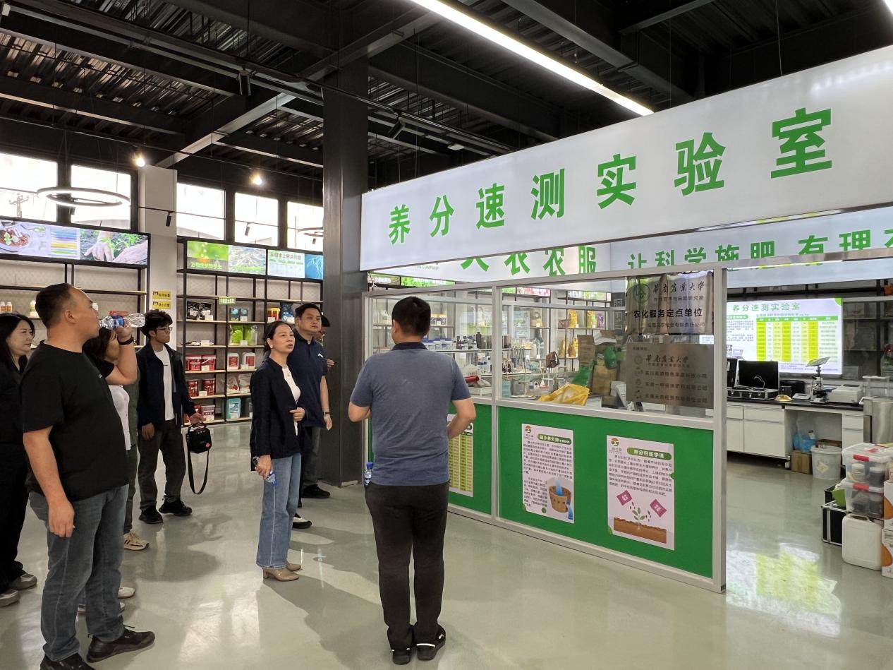 在小院指导老师陈鑫的引导与讲解下,学院党委书记易晖一行先后参观了小院速测实验室、宾川土壤科普展示区、宾川水果产销专业农村合作社、数字水肥应用展示区等地。陈鑫详细介绍小院功能定位、田间服务流程及土壤速测、植株养分检测等技术应用情况,展示小院立足宾川高原特色果蔬产业、扎根生产一线开展科技服务的实践场景。