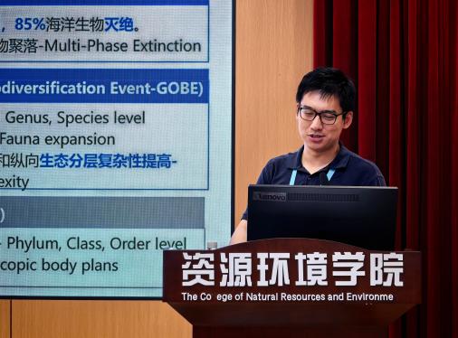 中国科学院地质与地球物理研究所刘牧副研究员讲述了“从大辐射到大灭绝:奥陶纪环境-生物的协同演化”。刘副研究员以奥陶纪生物大辐射(GOBE)、奥陶纪生命大灭绝(LOME)两次截然相反的事件为代表,回溯了奥陶-志留纪时期海陆环境的变化,探究了与同时期重大生物事件的联系,并利用铀、锶同位素、铈异常等多项指标揭示了其背后的环境驱动机制以及各圈层间的反馈机理,为预测当前全球变化背景下的生物多样性变化提供了重要参考。